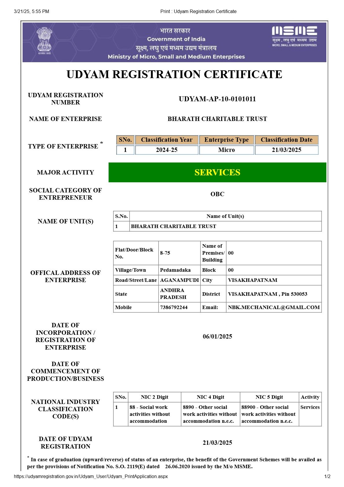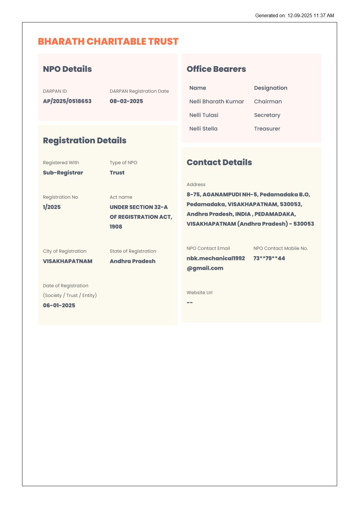 The BHARATH CHARITABLE TRUST
